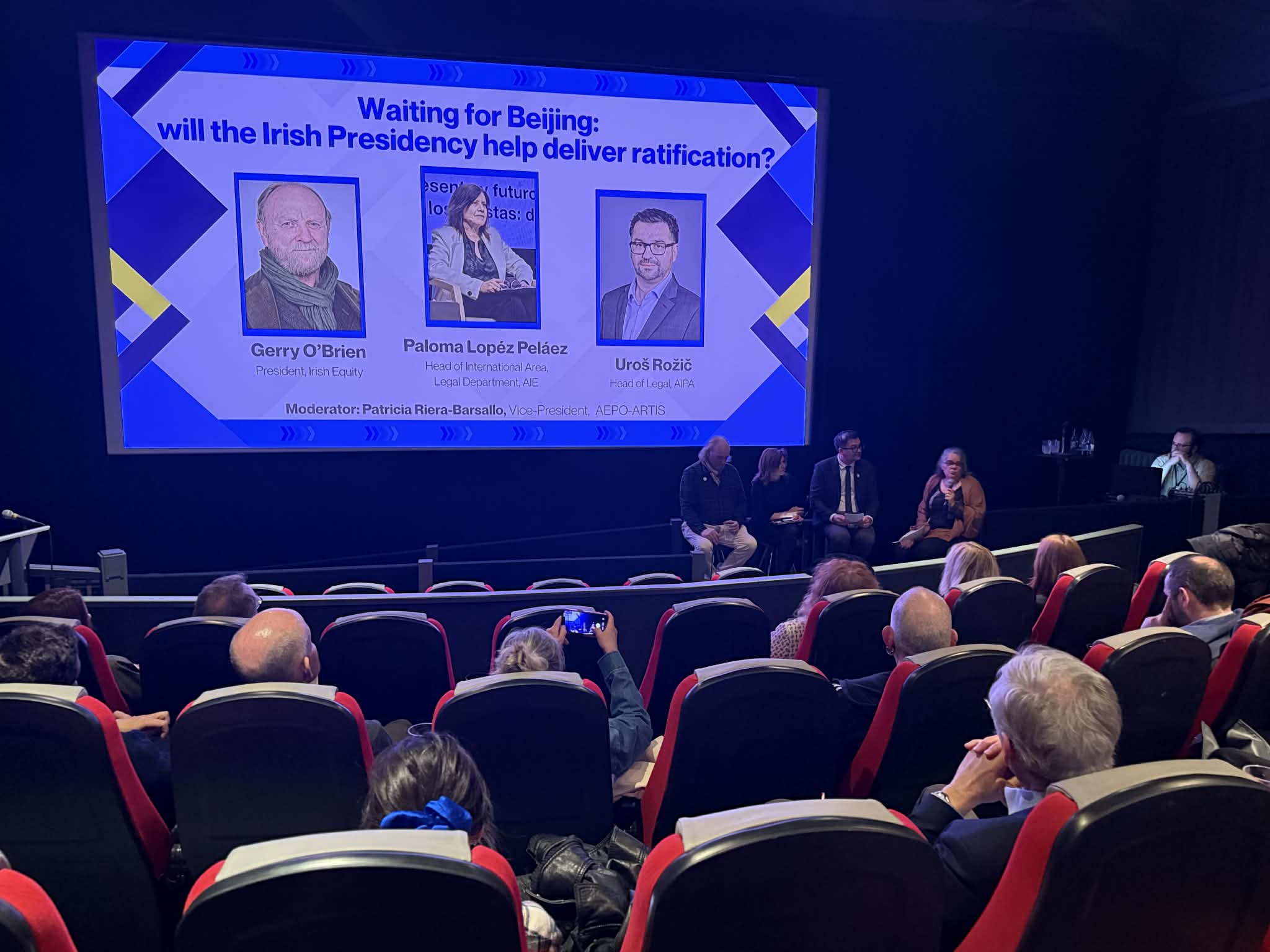 Osrednji dogodek srečanja je bila razprava z irskimi odločevalci in predstavniki kulturnega sektorja na Irskem filmskem inštitutu, posvečena vprašanju ratifikacije Pekinške pogodbe in diskusiji o tem, kako lahko prihajajoče irsko predsedovanje Svetu EU prispeva k napredku na področju pravic izvajalcev. Kot strokovni govorec je sodeloval tudi vodja naše pravne službe mag. Uroš Rožič, ki je v svojem nastopu izpostavil dolgoletno prizadevanje za ratifikacijo Pekinške pogodbe ter poudaril, da gre za vprašanje, ki presega zgolj pravne razprave in odpira tudi širšo odgovornost evropskih institucij. V razpravi je izpostavil tudi osebno dimenzijo tega procesa, saj je sodeloval že ob podpisu pogodbe pred več kot desetletjem: